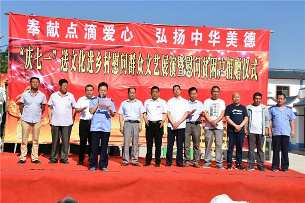 6月26日,风景如画的中滩镇蒲甸村新农村文化广场上,人头攒动,乐声飘扬,由麦积区非公企业党工委主办,天水市麦积区天河建筑工程有限公司党支部承办,举行了慰问困难群众和送文化下乡文艺展演活动。