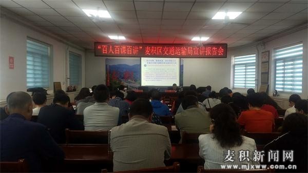 区交通运输局 近日,区交通运输局开展“百人百课百讲”宣讲活动,邀请市委研究室副主任吴和平作专题报告,全体干部职工聆听宣讲。