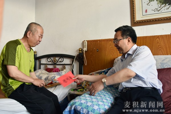 6月28日,在建党97周年即将到来之际,市政协副主席、麦积区委书记张智明带着党组织的关怀和厚爱走访看望慰问生活困难党员,为他们送去节日的祝福以及党和政府的关怀和温暖。