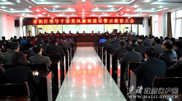 11月14日,麦积区召开领导干部党风廉政建设警示教育大会,剖析违纪违法典型案件,深入开展警示教育,进一步增强领导干部廉洁自律意识,切实提高拒腐防变能力,营造风清气正的良好从政环境。