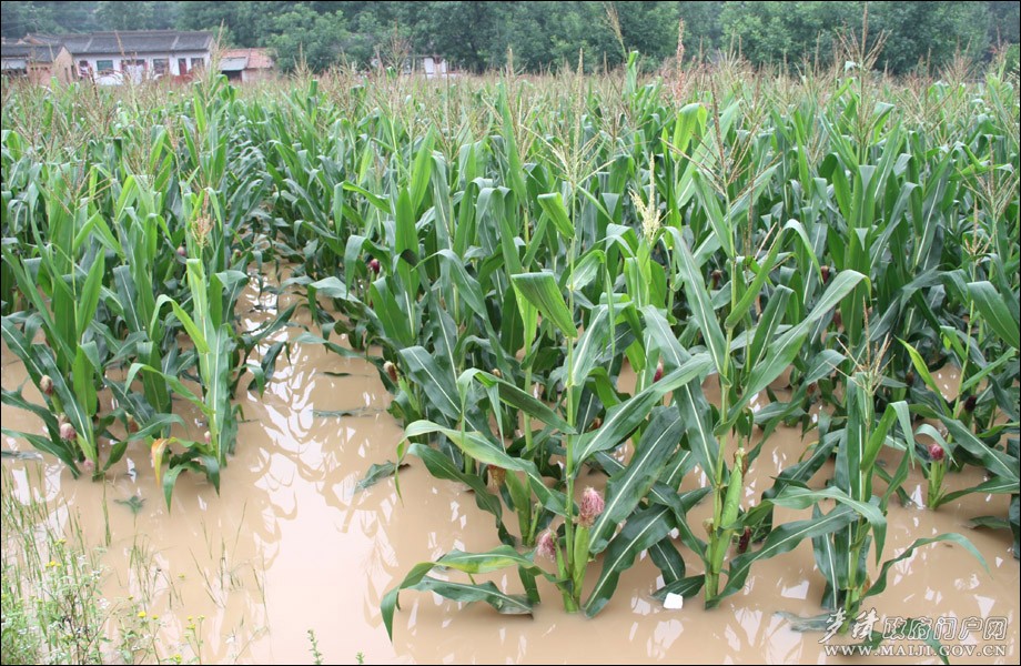 (洪水涌入玉米地)