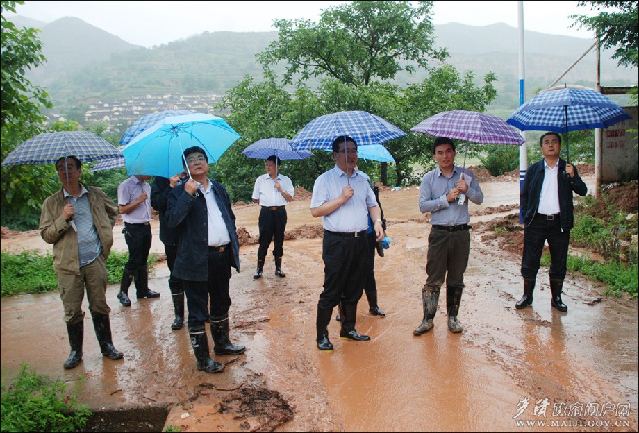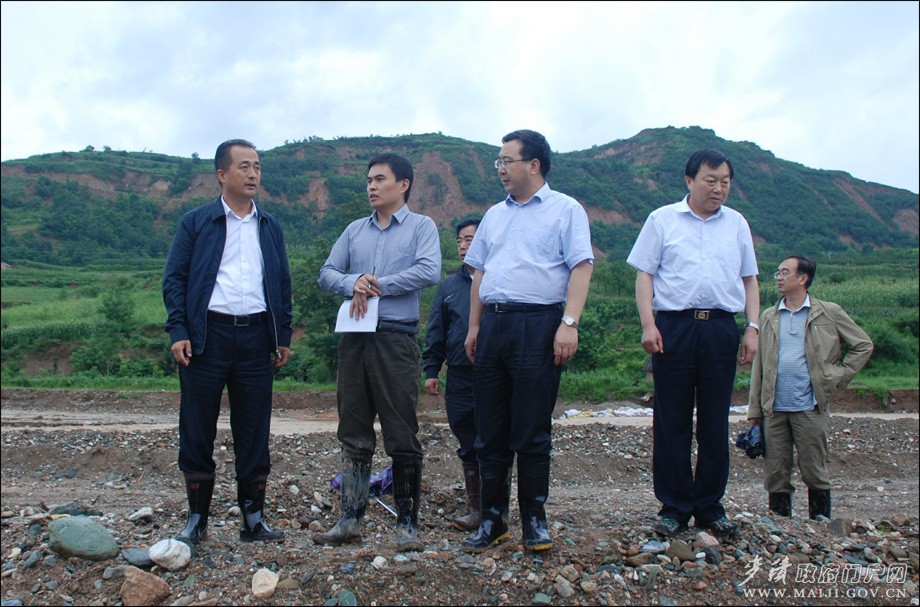 7月28日下午,民政部检查组一行在省民政厅副厅长郭华峰,副市长雷鸣,区委书记张智明,区委副书记、区长成少平,区委常委、马跑泉镇党委书记杜峥嵘等陪同下,专程赶赴麦积区查看灾情及受灾群众安置等情况。