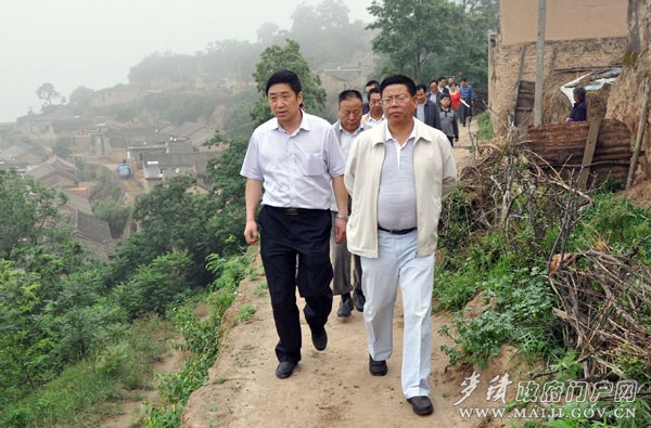 在半山村,贾应珍实地查看了该村大崖自然地质灾害裂缝险情处置情况,随后在村委会办公室召开座谈会,听取了社棠镇和相关部门就目前半山村急需解决的问题和整村推进项目安排情况。
