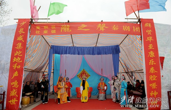 为丰富广大群众文化生活,为期4天的麦积区社棠镇秦腔文艺汇演近日在金都文化广场圆满落幕,此次秦腔文艺汇演是由社棠镇陇之声秦剧团独家免费演唱,规模空前的一次秦腔文艺汇演,充分体现了该剧团“情系百姓、为民唱戏”的高尚情操,是对当前正在深入开展的党的群众路线教育实践活动的高度诠释,深受当地广大群众和戏迷的欢迎。