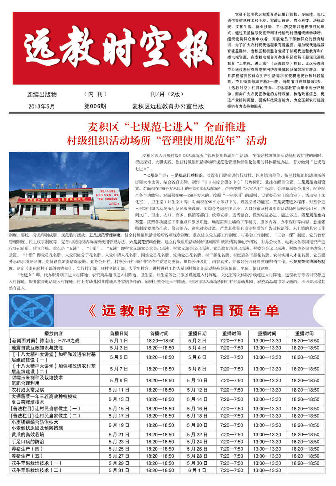 《远教时空报》第六期2013年5月