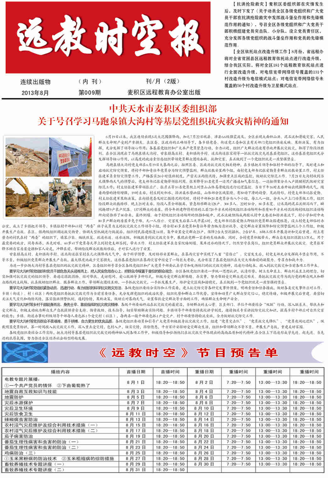 《远教时空报》第九期2013年8月