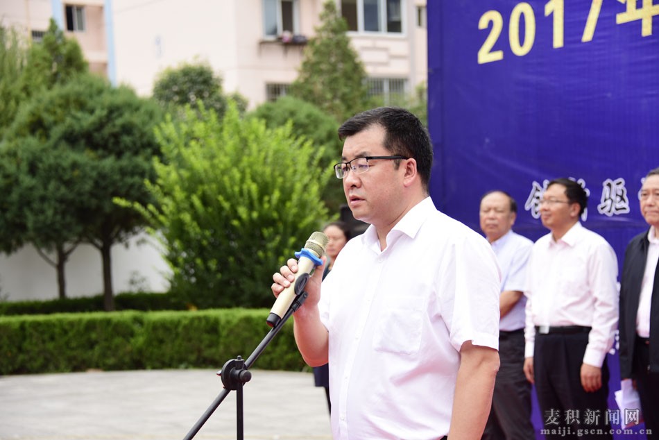 市委常委、组织部长王正茂宣布2017年天水市全国科普日暨中国流动科技馆第二轮巡展(麦积)启动仪式开幕,市委常委、副市长李晓东讲话。市人大常委会副主任蒲朝晖,市政协副主席苏定武,麦积区委书记张智明,区政协主席杨续祥,市教育局副局长张笑青,市科协副主席屈东明,市科技局副局长赵占军,市农业局调研员于凤玲,麦积区人大常委会副主任方明太,副区长成红梅等出席开幕式,市科协主席伏平主持开幕式。龙园小学学生代表作了发言。